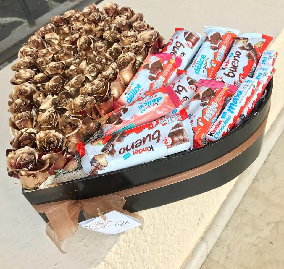 Caja corazón negra mitad rosa dorada mitad dulces Kinder
