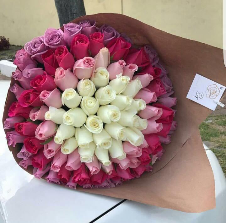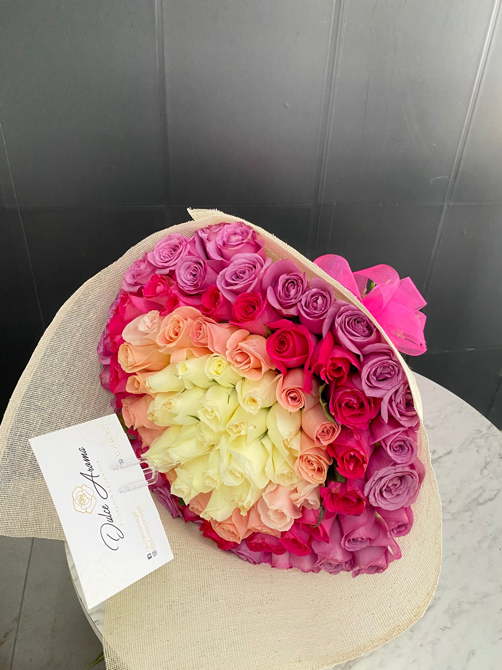 Ramo 120 rosas aproximadamente en varias tonalidades degradación