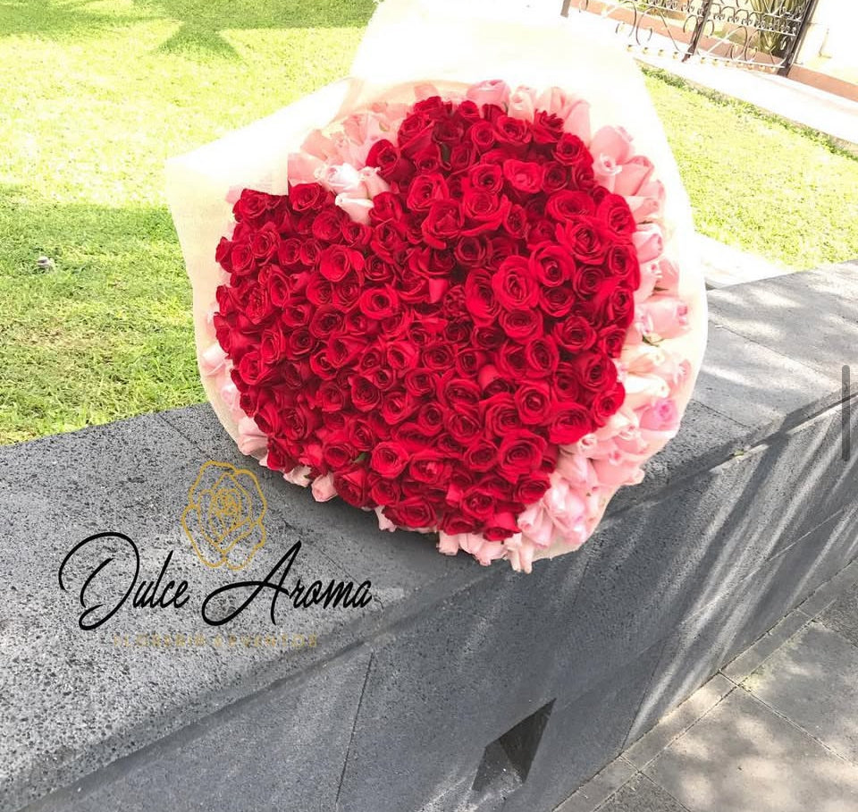 Ramo 500 rosas rojas corazón en medio rosas rositas