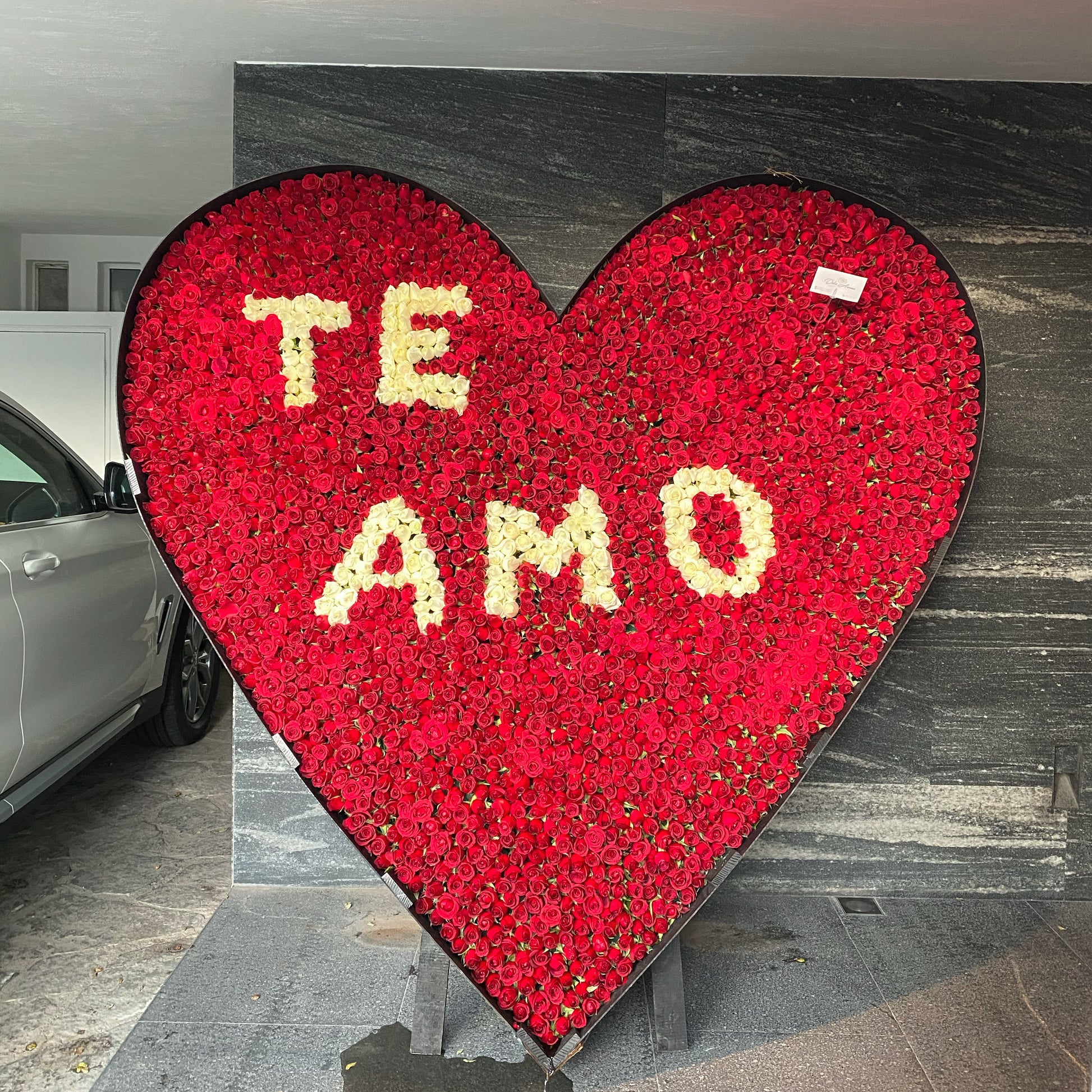 Corazón 2 metros TE AMO en rosas blancas con aproximadamente 2500 rosas