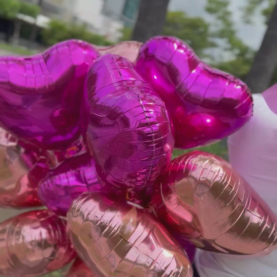 Ramo 150 rosas combina rositas y 12 globos de corazones rositas