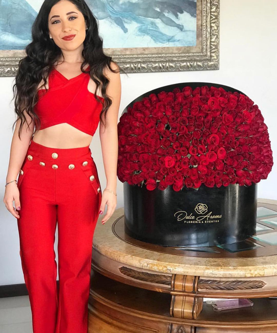 Caja circular grande 60 cm media esfera base negra 500 rosas 🌹Â