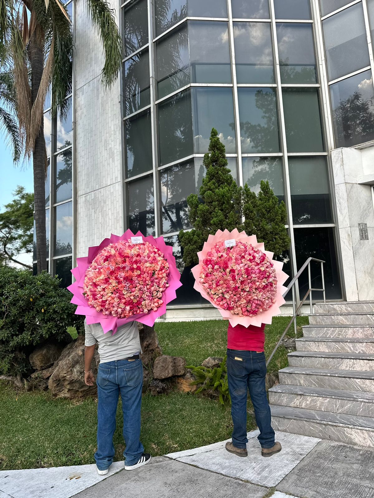 Ramo 500 rosas en tonos rositas envoltura rosa