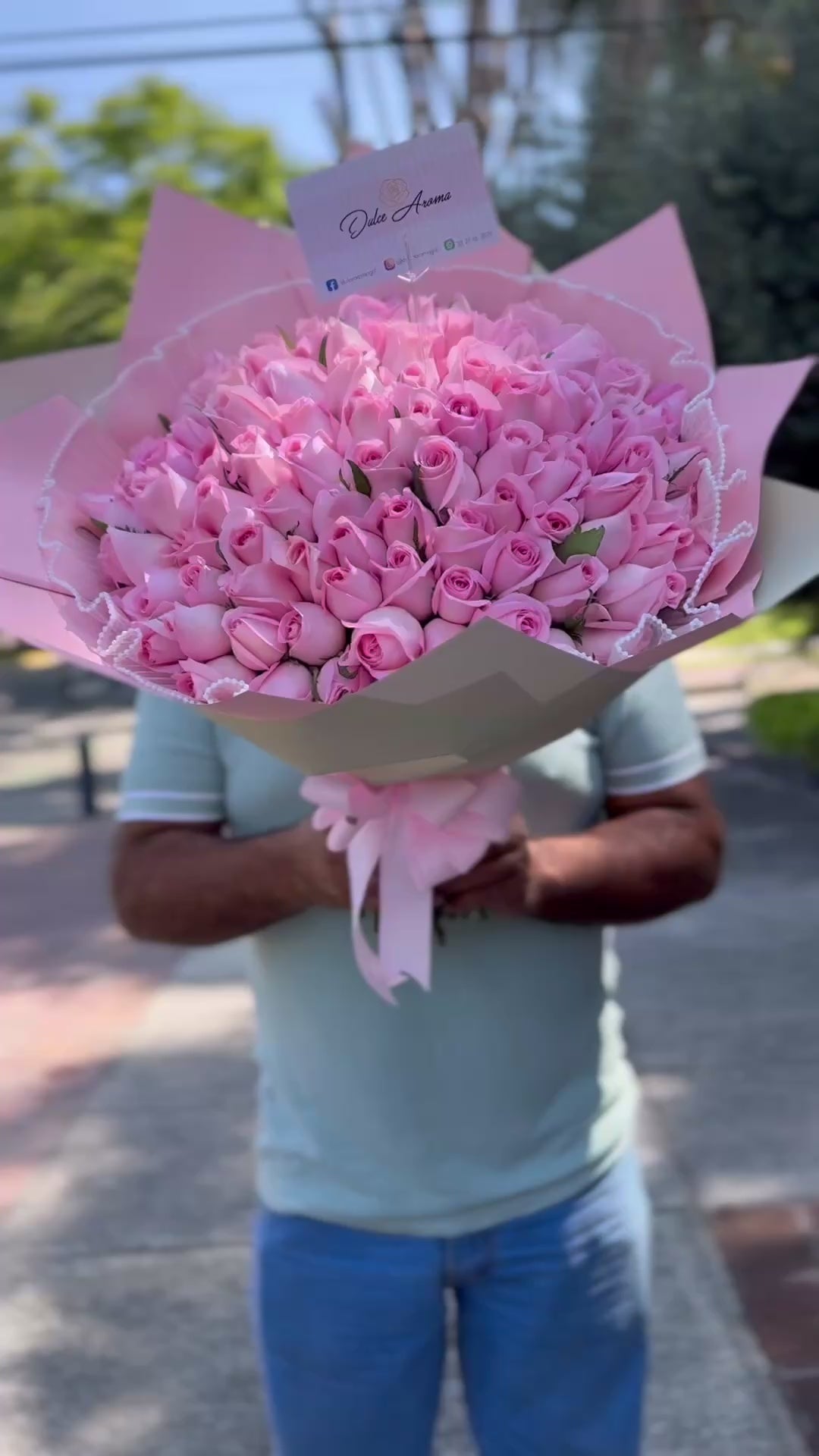 Ramo 100 Rosas sweet envoltura perlas y papel coreano rosa