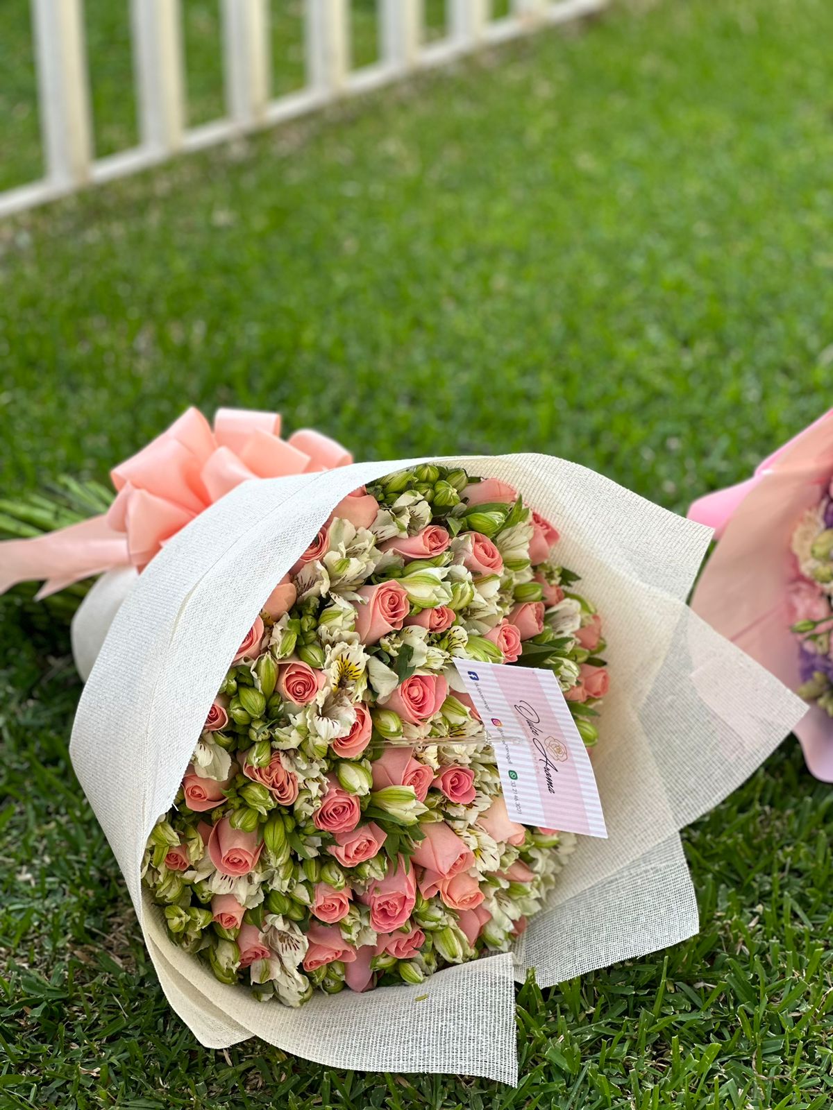 Ramo 40 rosas hermosas y astromelias, envoltura yute