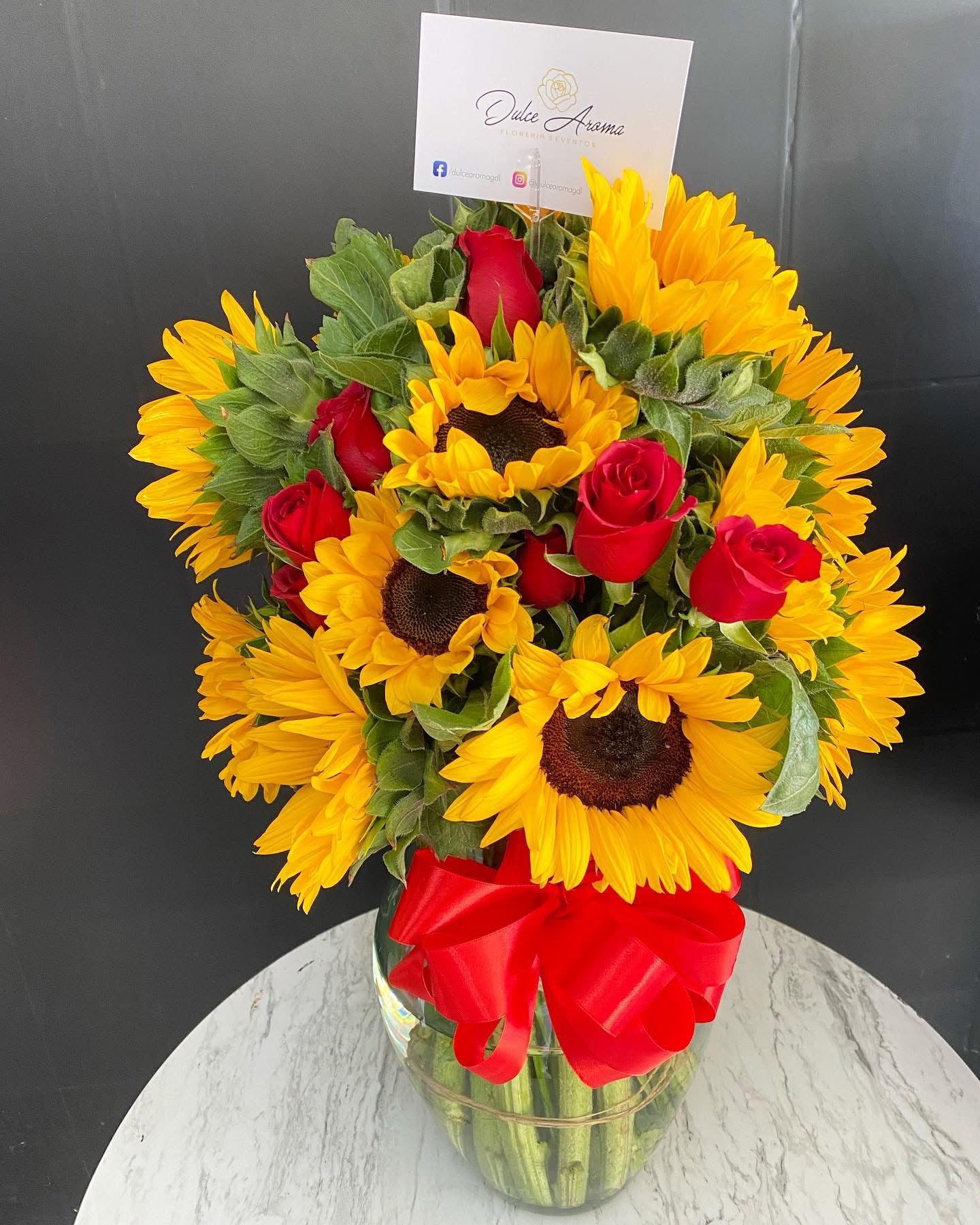 Florero 20 girasoles y 24 rosas rojas