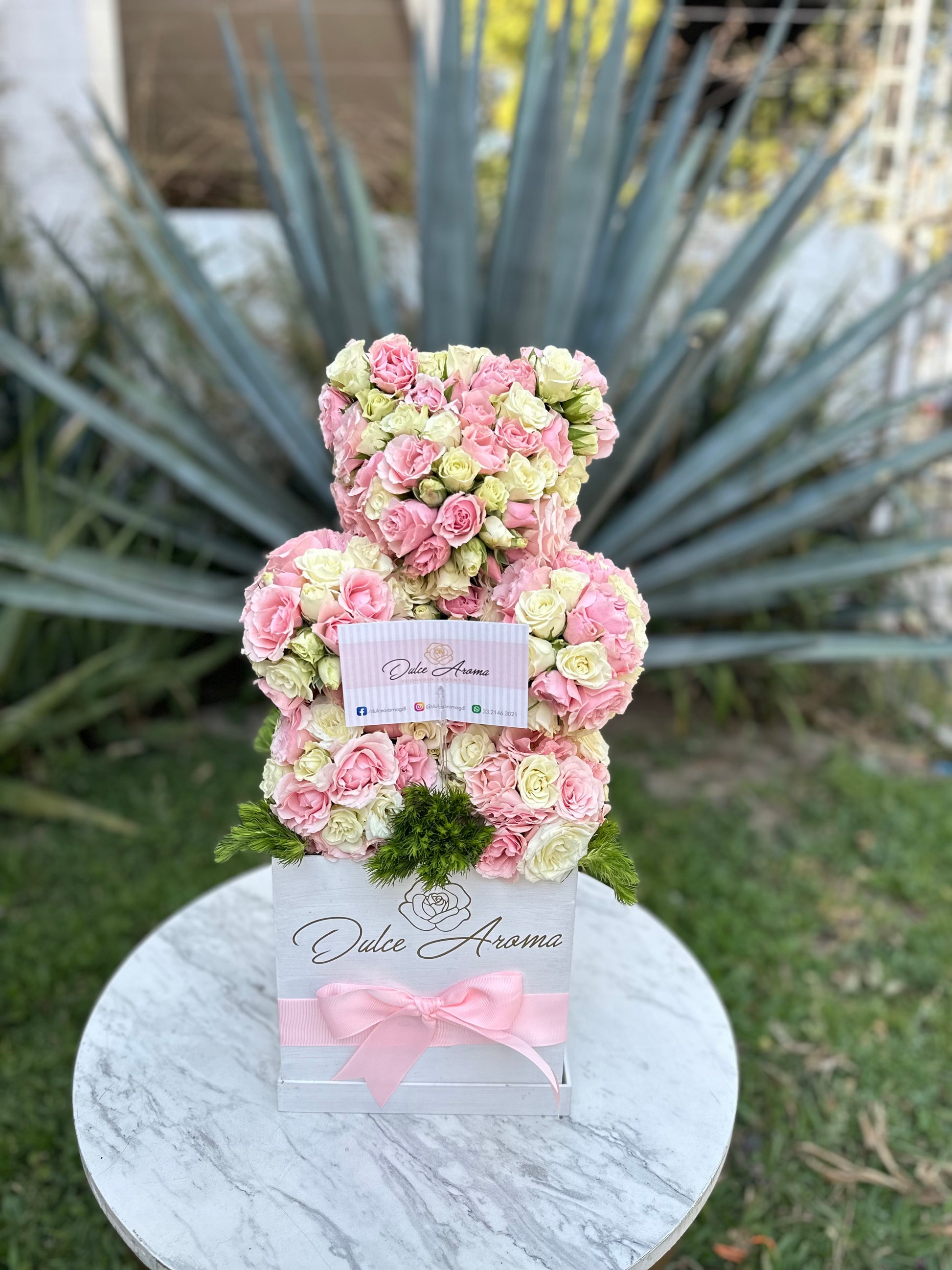 Oso de mini rosas rosas y blancas