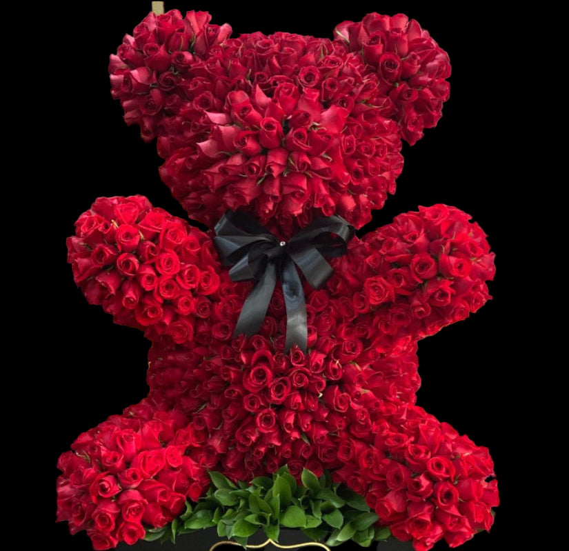 Oso 1000 rosas rojas y 10 floreros con ramos de 50 rosas rojas