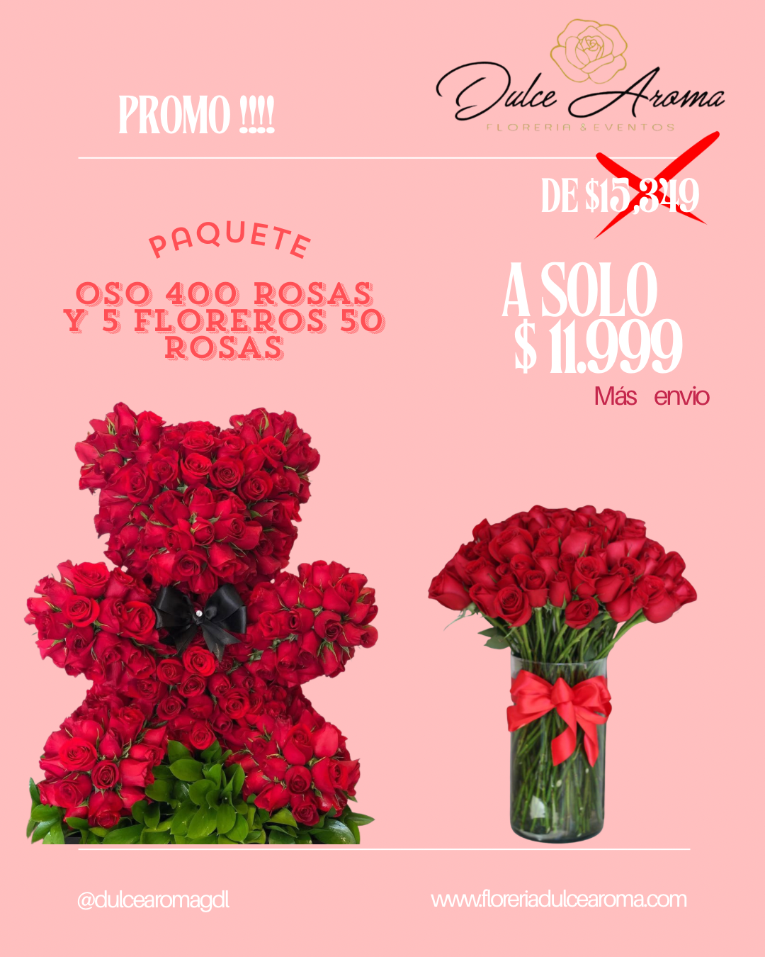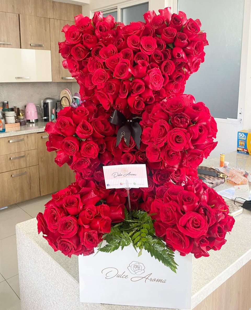 Oso 400 rosas aproximadamente y 5 floreros 50 rosas