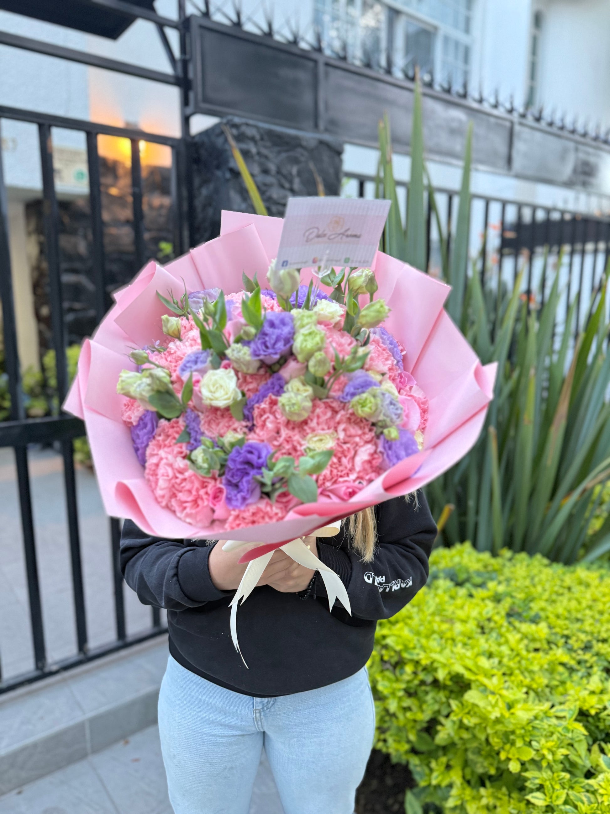 Ramo claveles, lisianthius y rosas