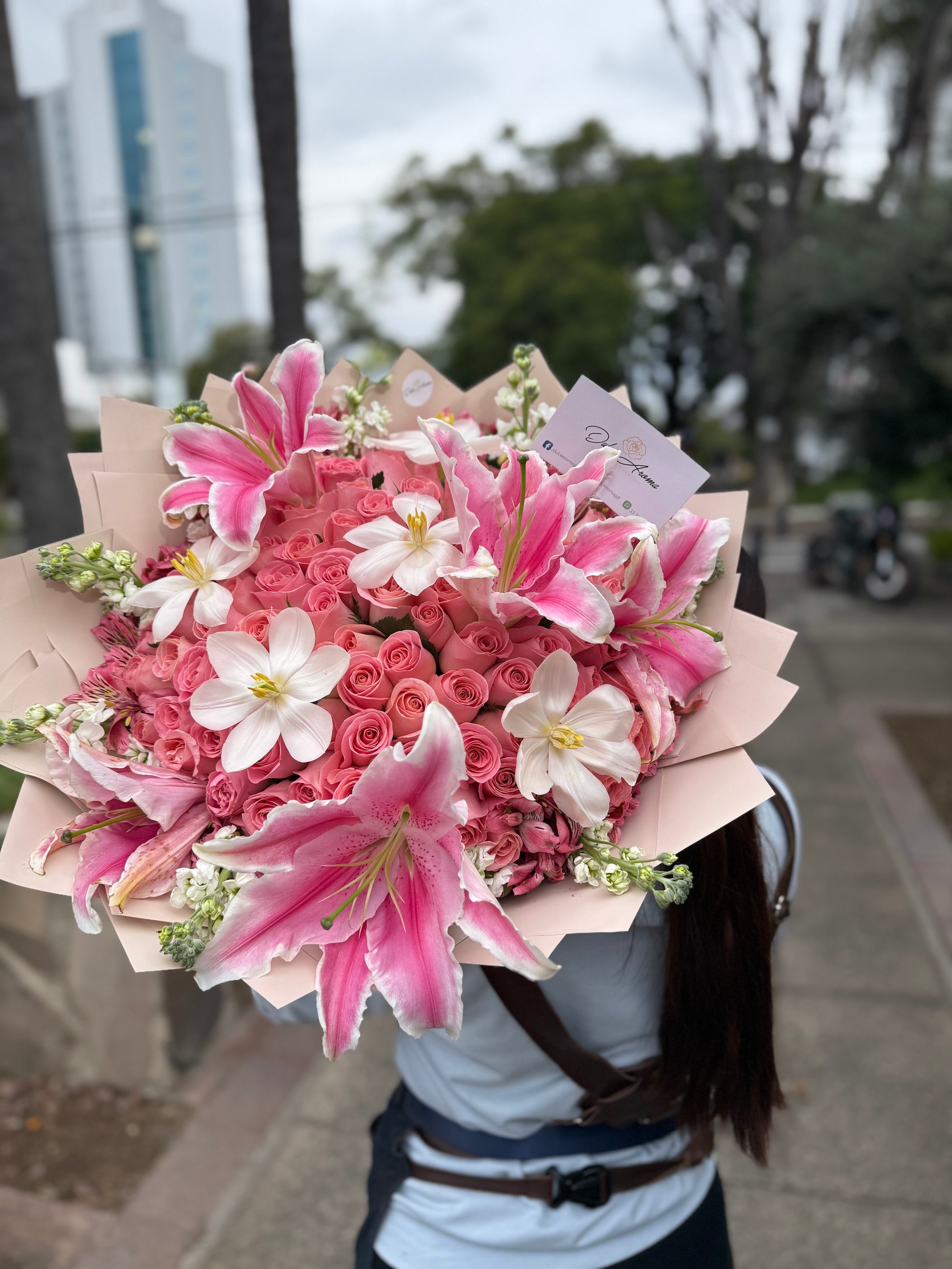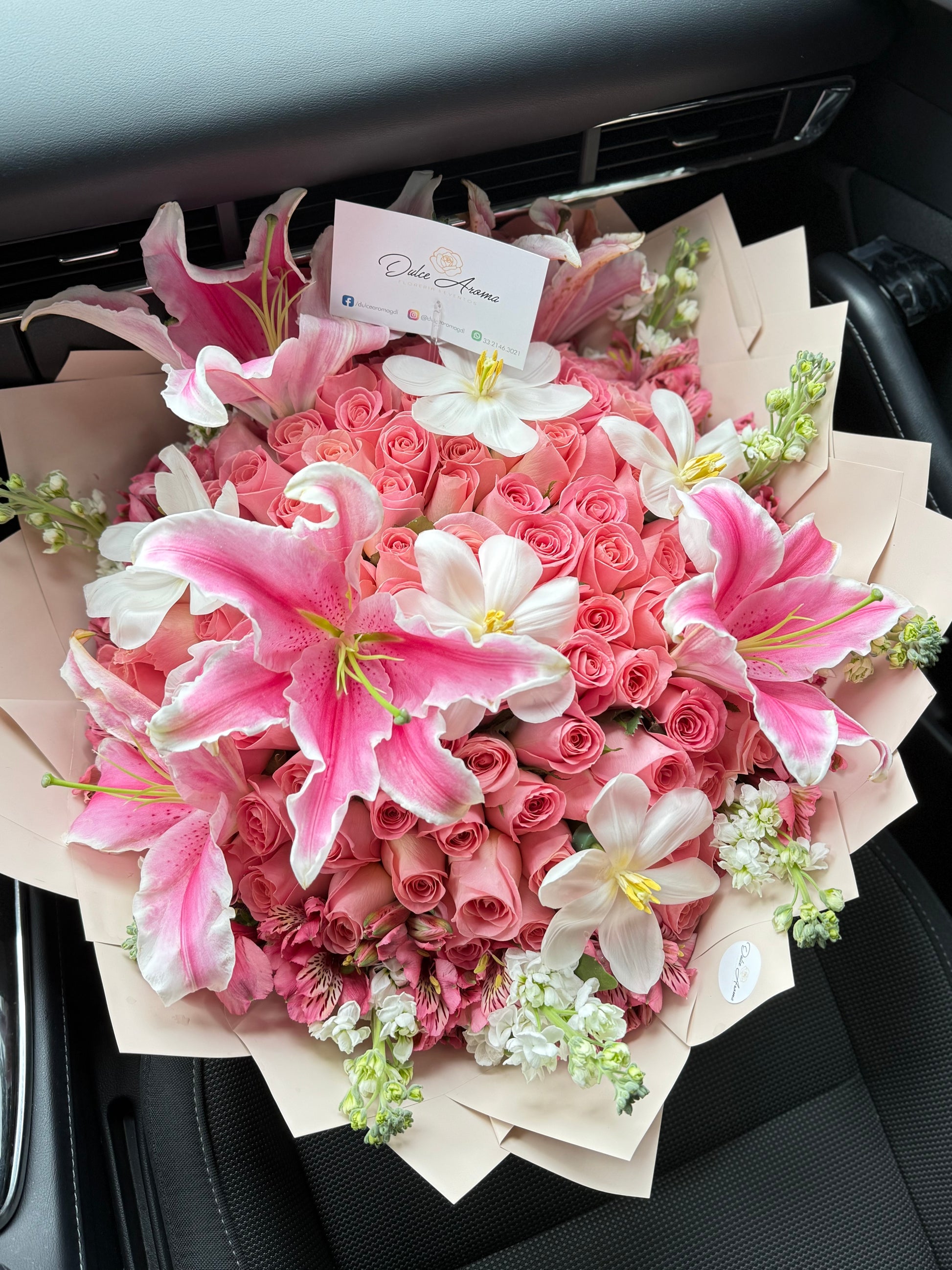 Ramo 100 rosas hermosas, lirios y tulipanes