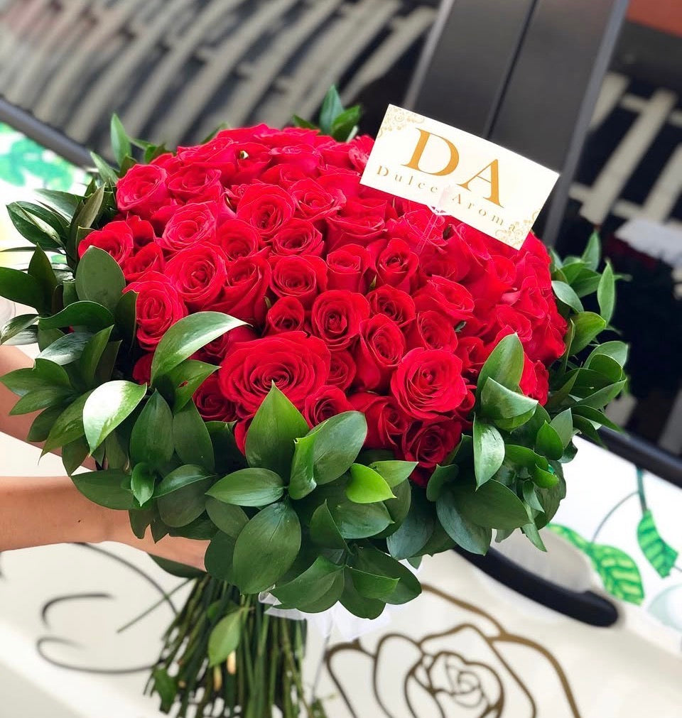 Ramo 100 rosas envoltura de follaje
